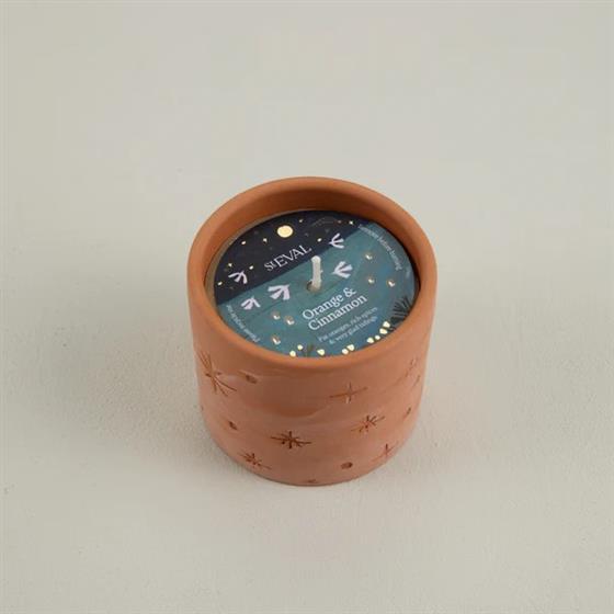Etched with stars, shaped by the land. These pots glimmer with festive fragrance, like whispers from constellations dancing above the Cornish coast. Pot hand crafted in Portugal.